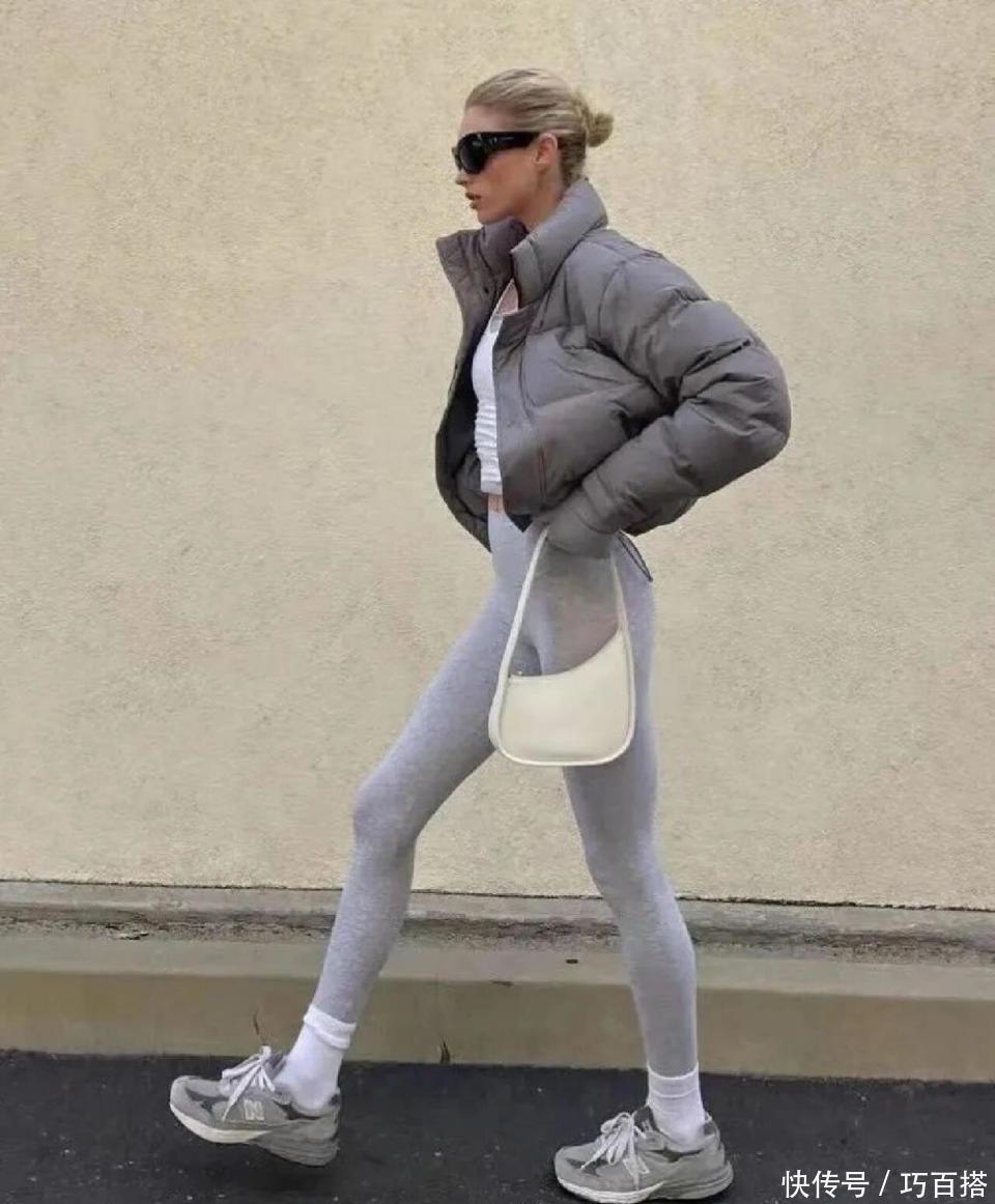 选择瑜伽裤可以搭配短款上衣露出完美腰臀比,也可以选择搭配遮住屁股的卫衣、毛衣、羽绒服,利用上松下紧的穿衣风格也能轻松赚足回头率,搭配堆堆袜衔接瑜伽裤与运动鞋,保暖又有层次,有效避免了视觉疲劳。